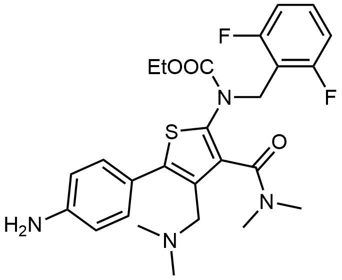 Synonyms: ethyl (5-(4-aminophenyl)-4-((dimethylamino)methyl)-3-(dimethylcarbamoyl)thiophen-2-yl)(2,6-difluorobenzyl)carbamate