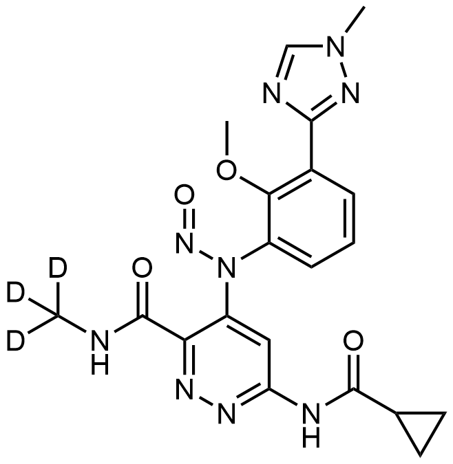 Synonyms: 6-(cyclopropanecarboxamido)-4-((2-methoxy-3-(1-methyl-1H-1,2,4-triazol-3-yl)phenyl)amino)-N-(methyl-d3)pyridazine-3-carboxamide