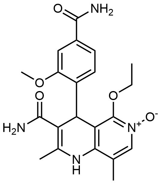 Synonyms: 3-carbamoyl-4-(4-carbamoyl-2-methoxyphenyl)-5-ethoxy-2,8-dimethyl-1,4-dihydro-1,6-naphthyridine 6-oxide