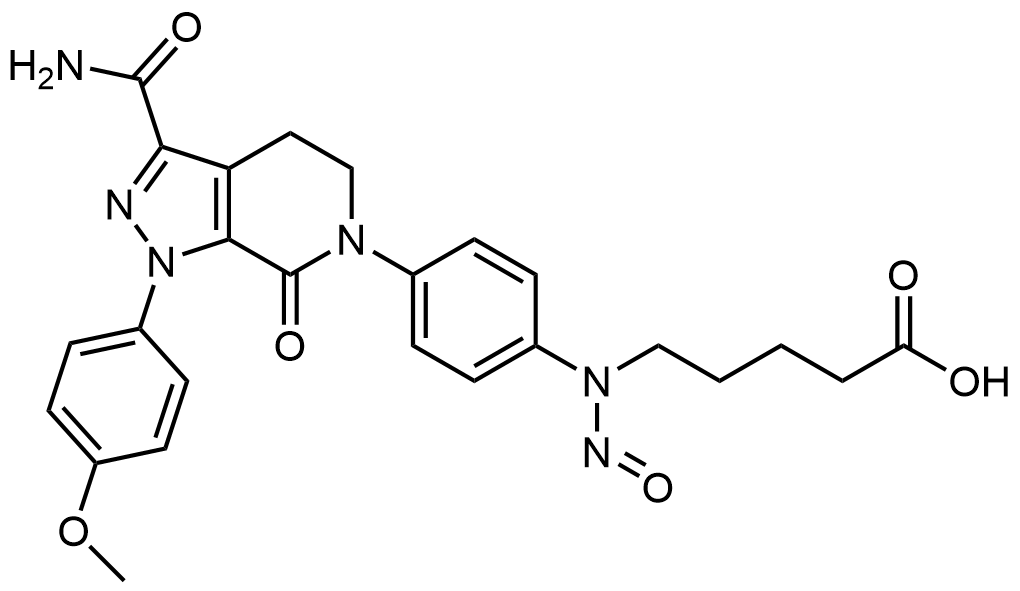 Synonyms: 5-((4-(3-carbamoyl-1-(4-methoxyphenyl)-7-oxo-1,4,5,7-tetrahydro-6H-pyrazolo[3,4-c]pyridin-6-yl)phenyl)(nitroso)amino)pentanoic acid