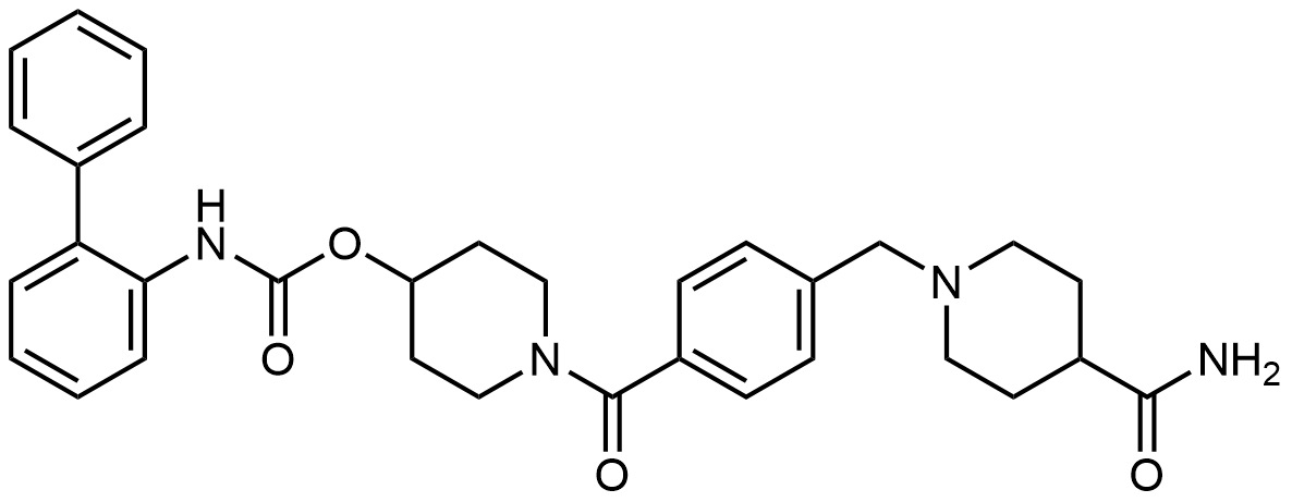 Synonyms: 1-(4-((4-carbamoylpiperidin-1-yl)methyl)benzoyl)piperidin-4-yl [1,1'-biphenyl]-2-ylcarbamate