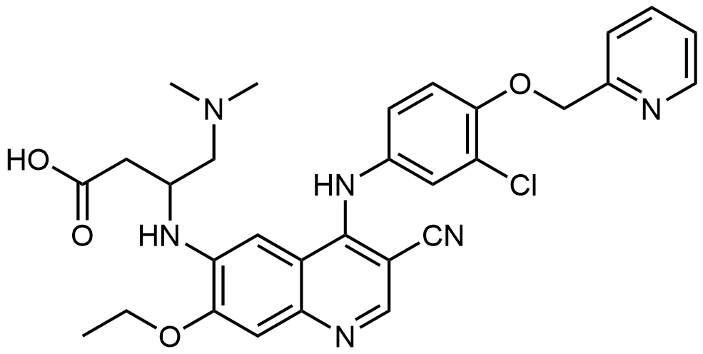 Synonyms: 3-((4-((3-chloro-4-(pyridin-2-ylmethoxy)phenyl)amino)-3-cyano-7-ethoxyquinolin-6-yl)amino)-4-(dimethylamino)butanoic acid
