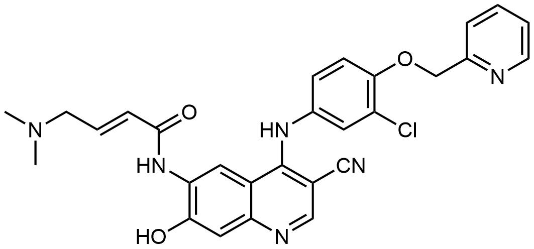 Synonyms: (E)-N-(4-((3-chloro-4-(pyridin-2-ylmethoxy)phenyl)amino)-3-cyano-7-hydroxyquinolin-6-yl)-4-(dimethylamino)but-2-enamide