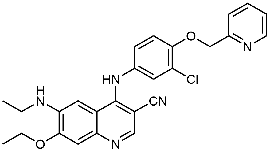 Synonyms: 4-((3-chloro-4-(pyridin-2-ylmethoxy)phenyl)amino)-7-ethoxy-6-(ethylamino)quinoline-3-carbonitrile