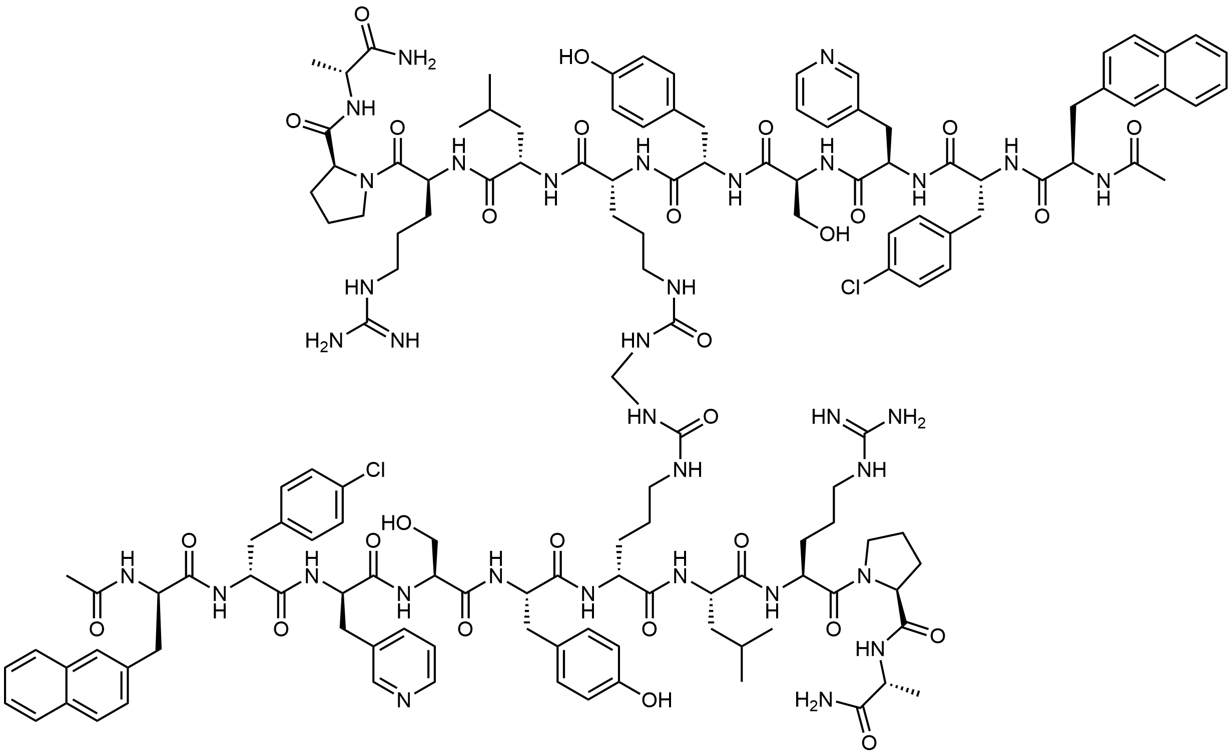 Synonyms: (2R,16R)-N1,N17-bis((S)-1-(((S)-1-((S)-2-(((R)-1-amino-1-oxopropan-2-yl)carbamoyl)pyrrolidin-1-yl)-5-guanidino-1-oxopentan-2-yl)amino)-4-methyl-1-oxopentan-2-yl)-2,16-bis((2S,5S,8R,11R,14R)-11-(4-chlorobenzyl)-2-(4-hydroxybenzyl)-5-(hydroxymethyl)-14-(naphthalen-2-ylmethyl)-4,7,10,13,16-pentaoxo-8-(pyridin-3-ylmethyl)-3,6,9,12,15-pentaazaheptadecanamido)-7,11-dioxo-6,8,10,12-tetraazaheptadecanediamide
