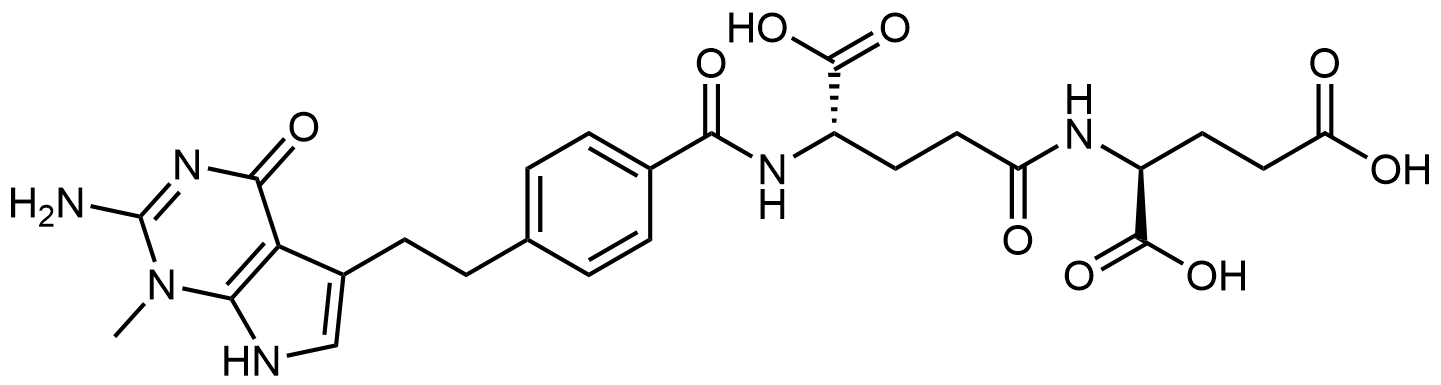 Synonyms: ((S)-4-(4-(2-(2-amino-1-methyl-4-oxo-4,7-dihydro-1H-pyrrolo[2,3-d]pyrimidin-5-yl)ethyl)benzamido)-4-carboxybutanoyl)-L-glutamic acid
