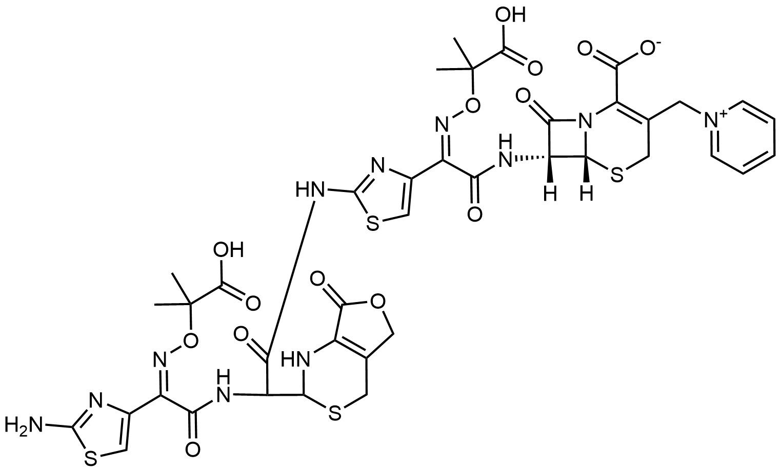 Synonyms: (6R,7R)-7-((Z)-2-(2-(2-((Z)-2-(2-aminothiazol-4-yl)-2-(((2-carboxypropan-2-yl)oxy)imino)acetamido)-2-(7-oxo-1,2,5,7-tetrahydro-4H-furo[3,4-d][1,3]thiazin-2-yl)acetamido)thiazol-4-yl)-2-(((2-carboxypropan-2-yl)oxy)imino)acetamido)-8-oxo-3-(pyridin-1-ium-1-ylmethyl)-5-thia-1-azabicyclo[4.2.0]oct-2-ene-2-carboxylate