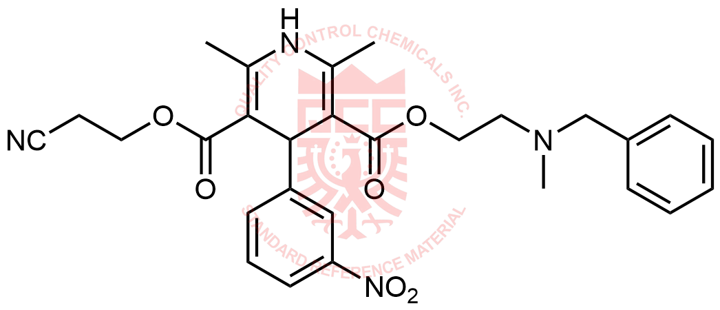 Synonyms: 3-(2-(benzyl(methyl)amino)ethyl) 5-(2-cyanoethyl) 2,6-dimethyl-4-(3-nitrophenyl)-1,4-dihydropyridine-3,5-dicarboxylate
