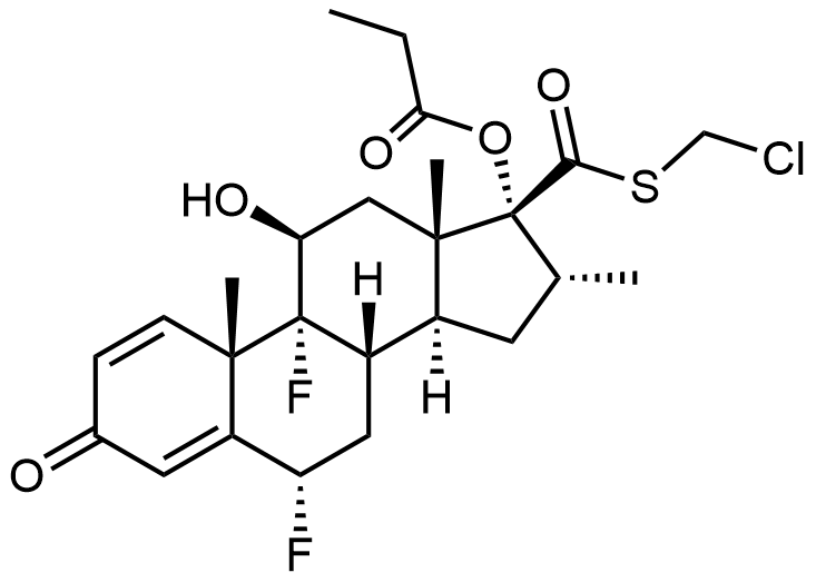 Synonyms: (6S,8S,9R,10S,11S,13S,14S,16R,17R)-17-(((chloromethyl)thio)carbonyl)-6,9-difluoro-11-hydroxy-10,13,16-trimethyl-3-oxo-6,7,8,9,10,11,12,13,14,15,16,17-dodecahydro-3H-cyclopenta[a]phenanthren-17-yl propionate