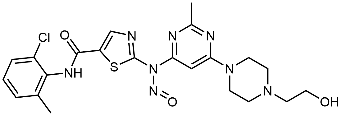 Synonyms: N-(2-chloro-6-methylphenyl)-2-((6-(4-(2-hydroxyethyl)piperazin-1-yl)-2-methylpyrimidin-4-yl)(nitroso)amino)thiazole-5-carboxamide