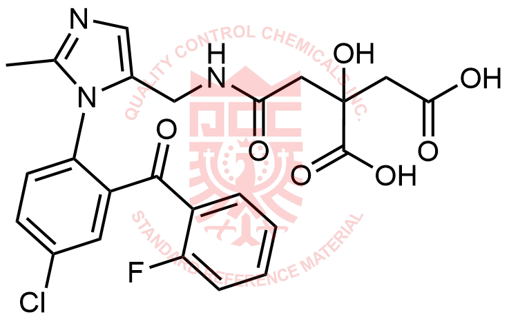 Synonyms: 2-(2-(((1-(4-chloro-2-(2-fluorobenzoyl)phenyl)-2-methyl-1H-imidazol-5-yl)methyl)amino)-2-oxoethyl)-2-hydroxysuccinic acid