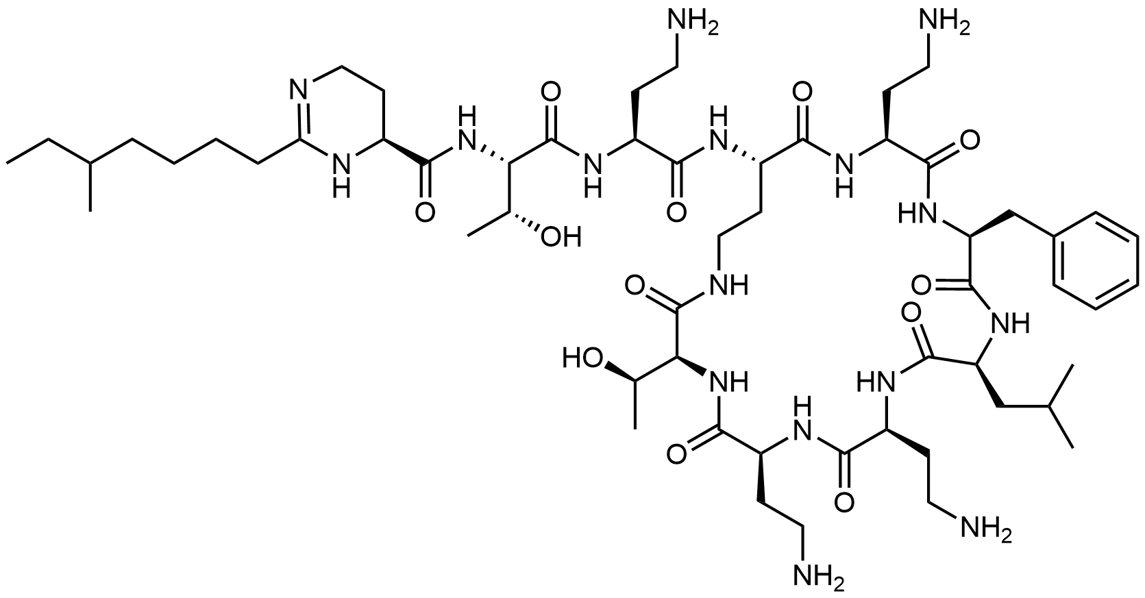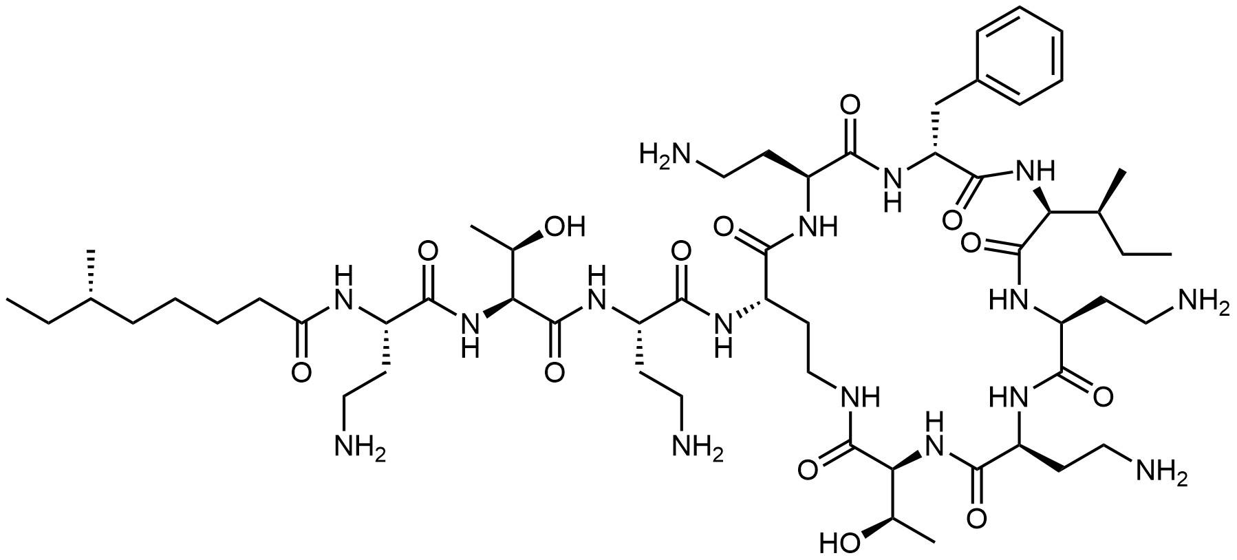 Synonyms: N-((2S)-4-amino-1-(((2S,3R)-1-(((2S)-4-amino-1-oxo-1-(((3S,6S,9S,12S,15S,18S,21S)-6,9,18-tris(2-aminoethyl)-15-benzyl-12-(sec-butyl)-3-((R)-1-hydroxyethyl)-2,5,8,11,14,17,20-heptaoxo-1,4,7,10,13,16,19-heptaazacyclotricosan-21-yl)amino)butan-2-yl)amino)-3-hydroxy-1-oxobutan-2-yl)amino)-1-oxobutan-2-yl)-6-methyloctanamide