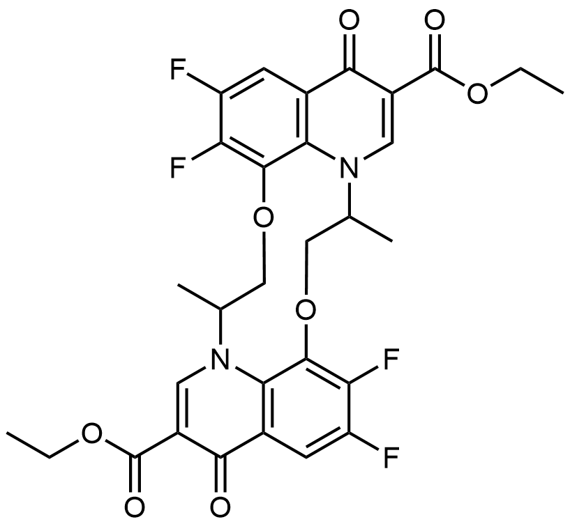Synonyms: diethyl 5,6,15,16-tetrafluoro-9,19-dimethyl-3,13-dioxo-8,9,18,19-tetrahydro-3H,13H-[1,7]dioxa[4,10]diazacyclododecino[2,3,4-ij:8,9,10-i'j']diquinoline-2,12-dicarboxylate