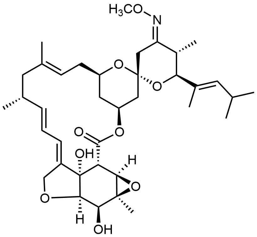 Synonyms: (2R,3'S,4E,5S,6S,7'R,9'E,12'R,13'E,15'E,15a1'S,17a'R,18'S,18a'S,19a'R,19b'R)-15a1',18'-dihydroxy-4-(methoxyimino)-5,10',12',18a'-tetramethyl-6-((E)-4-methylpent-2-en-2-yl)-3,3',4,4',5,6,8',11',12',15a1',16',17a',18',18a',19a',19b'-hexadecahydro-1'H,7'H-spiro[pyran-2,5'-[3,7]methano[1,5]dioxacyclooctadecino[9,8,7-cd]oxireno[2,3-f]benzofuran]-1'-one