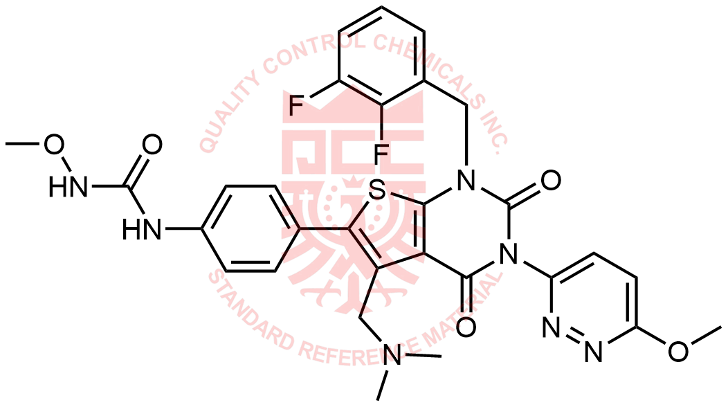 Synonyms: 1-(4-(1-(2,3-difluorobenzyl)-5-((dimethylamino)methyl)-3-(6-methoxypyridazin-3-yl)-2,4-dioxo-1,2,3,4-tetrahydrothieno[2,3-d]pyrimidin-6-yl)phenyl)-3-methoxyurea