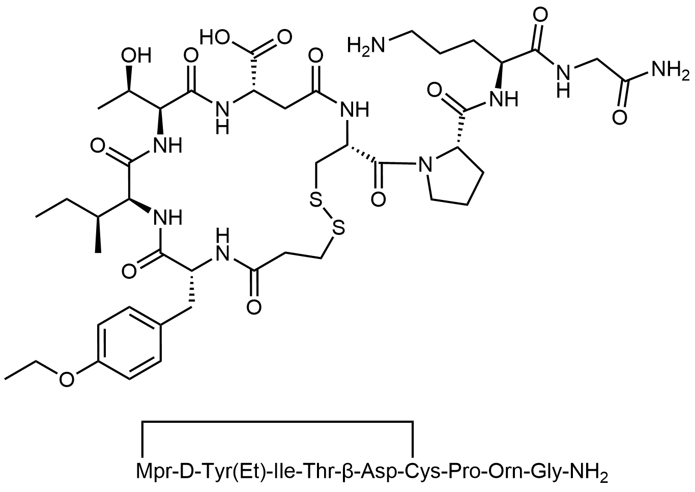 Synonyms: (4R,8S,11S,14S,17R)-4-((S)-2-(((S)-5-amino-1-((2-amino-2-oxoethyl)amino)-1-oxopentan-2-yl)carbamoyl)pyrrolidine-1-carbonyl)-14-((S)-sec-butyl)-17-(4-ethoxybenzyl)-11-((R)-1-hydroxyethyl)-6,10,13,16,19-pentaoxo-1,2-dithia-5,9,12,15,18-pentaazacyclohenicosane-8-carboxylic acid