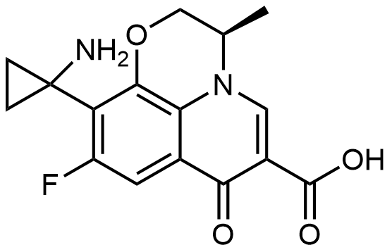 Synonyms: (R)-10-(1-aminocyclopropyl)-9-fluoro-3-methyl-7-oxo-2,3-dihydro-7H-[1,4]oxazino[2,3,4-ij]quinoline-6-carboxylic acid