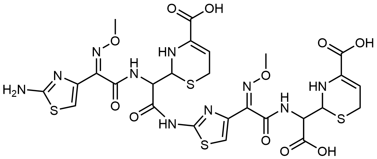 Synonyms: 2-(1-((Z)-2-(2-aminothiazol-4-yl)-2-(methoxyimino)acetamido)-2-((4-((Z)-2-((carboxy(4-carboxy-3,6-dihydro-2H-1,3-thiazin-2-yl)methyl)amino)-1-(methoxyimino)-2-oxoethyl)thiazol-2-yl)amino)-2-oxoethyl)-3,6-dihydro-2H-1,3-thiazine-4-carboxylic acid