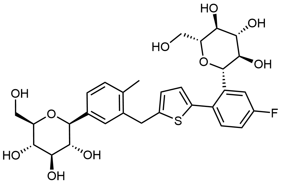 Synonyms: (2S,3R,4R,5S,6R)-2-(3-((5-(4-fluoro-2-((2S,3R,4R,5S,6R)-3,4,5-trihydroxy-6-(hydroxymethyl)tetrahydro-2H-pyran-2-yl)phenyl)thiophen-2-yl)methyl)-4-methylphenyl)-6-(hydroxymethyl)tetrahydro-2H-pyran-3,4,5-triol