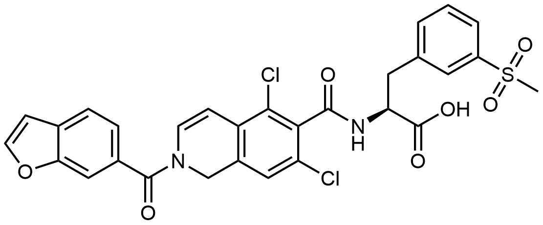 Synonyms: (S)-2-(2-(benzofuran-6-carbonyl)-5,7-dichloro-1,2-dihydroisoquinoline-6-carboxamido)-3-(3-(methylsulfonyl)phenyl)propanoic acid