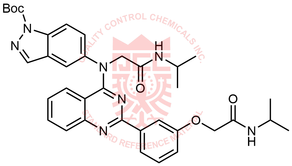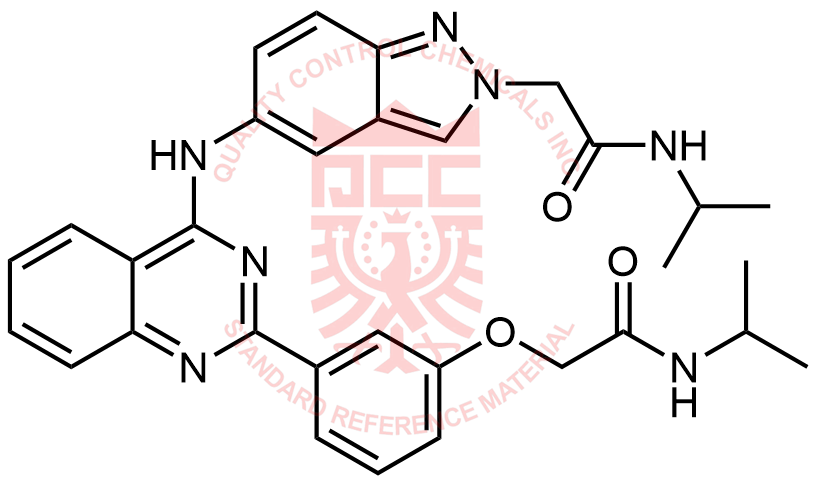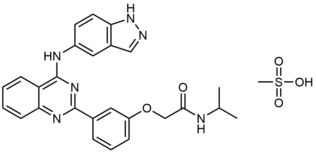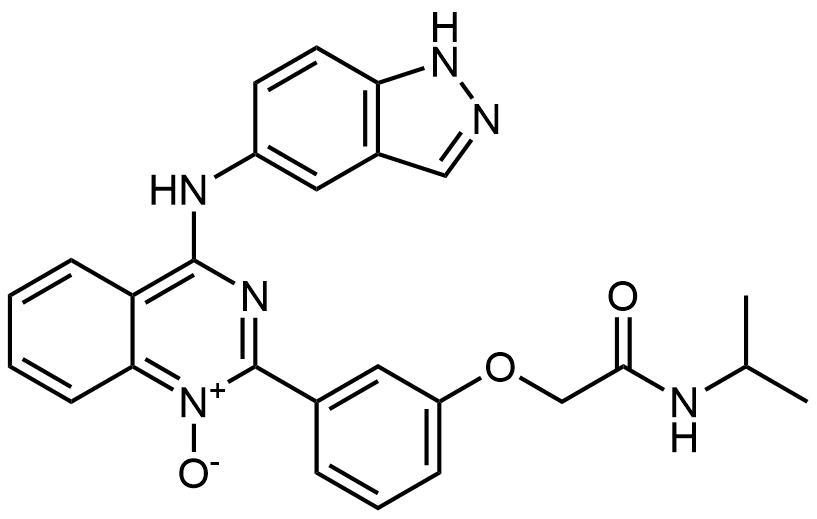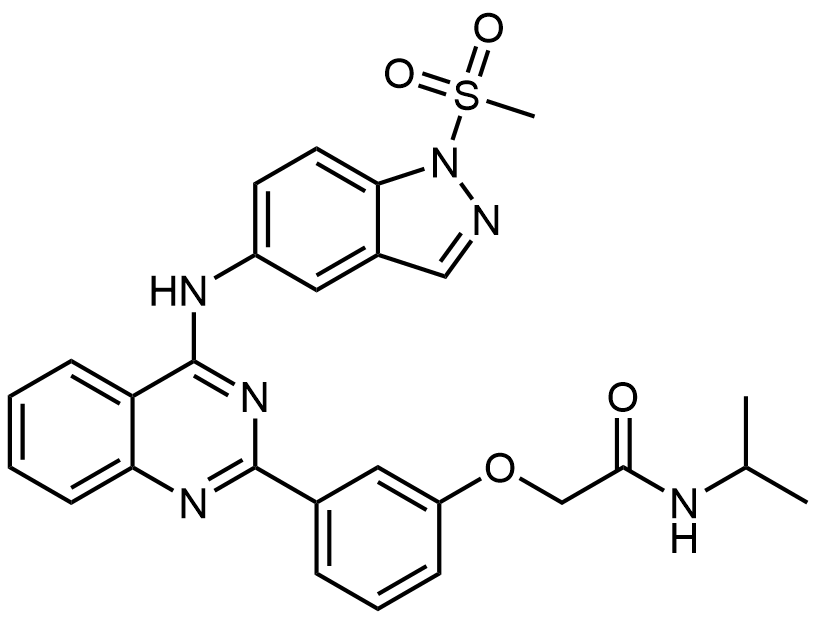 Synonyms: N-isopropyl-2-(5-((2-(3-(2-(isopropylamino)-2-oxoethoxy)phenyl)quinazolin-4-yl)amino)-2H-indazol-2-yl)acetamide
