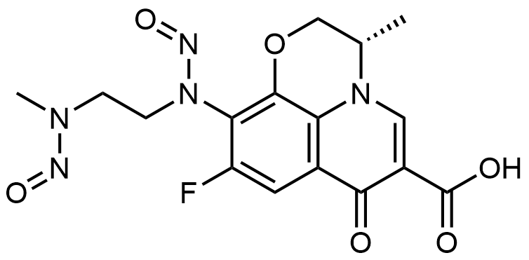 Synonyms: (S)-9-fluoro-3-methyl-10-((2-(methyl(nitroso)amino)ethyl)(nitroso)amino)-7-oxo-2,3-dihydro-7H-[1,4]oxazino[2,3,4-ij]quinoline-6-carboxylic acid