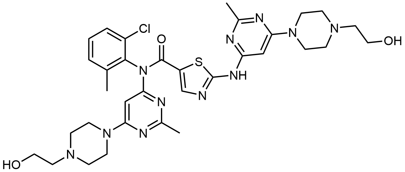 Synonyms: N-(2-chloro-6-methylphenyl)-N-(6-(4-(2-hydroxyethyl)piperazin-1-yl)-2-methylpyrimidin-4-yl)-2-((6-(4-(2-hydroxyethyl)piperazin-1-yl)-2-methylpyrimidin-4-yl)amino)thiazole-5-carboxamide