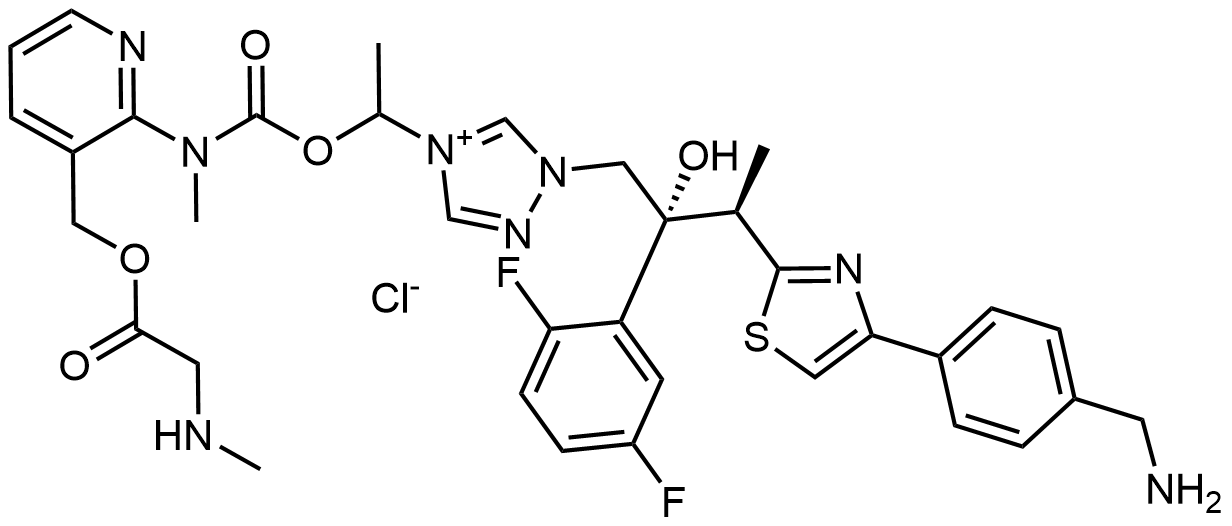 Synonyms: 1-((2R,3R)-3-(4-(4-(aminomethyl)phenyl)thiazol-2-yl)-2-(2,5-difluorophenyl)-2-hydroxybutyl)-4-(1-((methyl(3-(((methylglycyl)oxy)methyl)pyridin-2-yl)carbamoyl)oxy)ethyl)-1H-1,2,4-triazol-4-ium chloride