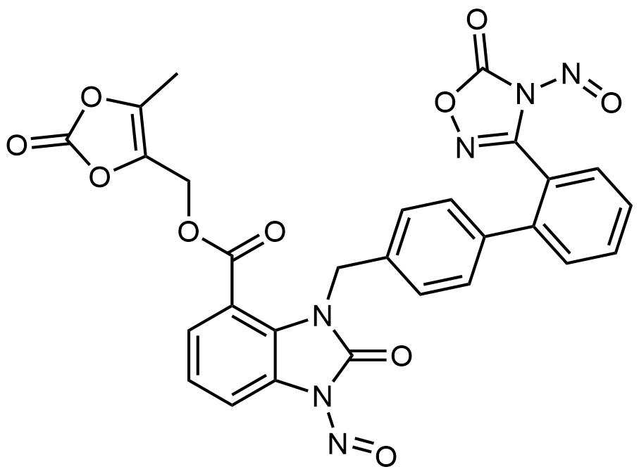 Synonyms: (5-methyl-2-oxo-1,3-dioxol-4-yl)methyl 1-nitroso-3-((2'-(4-nitroso-5-oxo-4,5-dihydro-1,2,4-oxadiazol-3-yl)-[1,1'-biphenyl]-4-yl)methyl)-2-oxo-2,3-dihydro-1H-benzo[d]imidazole-4-carboxylate