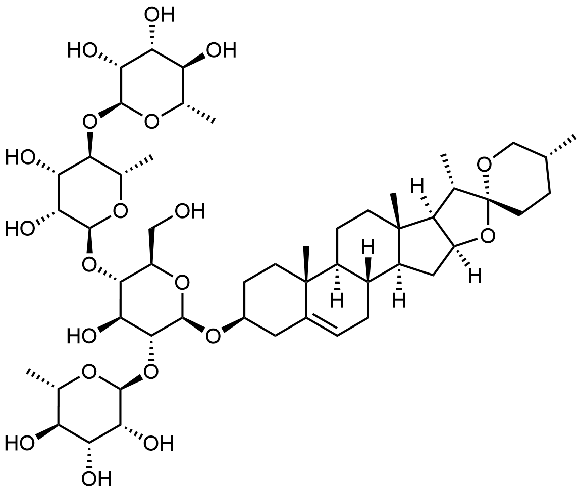 Synonyms: (2S,3R,4R,5R,6S)-2-(((2S,3R,4S,5R,6S)-4,5-dihydroxy-6-(((2R,3S,4S,5R,6R)-4-hydroxy-2-(hydroxymethyl)-6-(((4S,5'R,6aR,6bS,8aS,8bR,9S,10R,11aS,12aS,12bS)-5',6a,8a,9-tetramethyl-1,3,3',4,4',5,5',6,6a,6b,6',7,8,8a,8b,9,11a,12,12a,12b-icosahydrospiro[naphtho[2',1':4,5]indeno[2,1-b]furan-10,2'-pyran]-4-yl)oxy)-5-(((2S,3R,4R,5R,6S)-3,4,5-trihydroxy-6-methyltetrahydro-2H-pyran-2-yl)oxy)tetrahydro-2H-pyran-3-yl)oxy)-2-methyltetrahydro-2H-pyran-3-yl)oxy)-6-methyltetrahydro-2H-pyran-3,4,5-triol