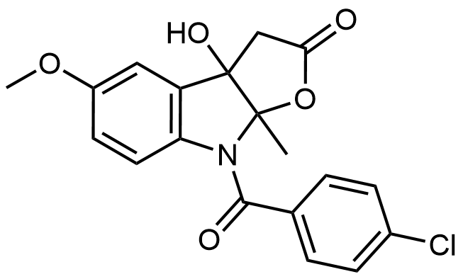 Synonyms: 8-(4-chlorobenzoyl)-3a-hydroxy-5-methoxy-8a-methyl-3,3a,8,8a-tetrahydro-2H-furo[2,3-b]indol-2-one