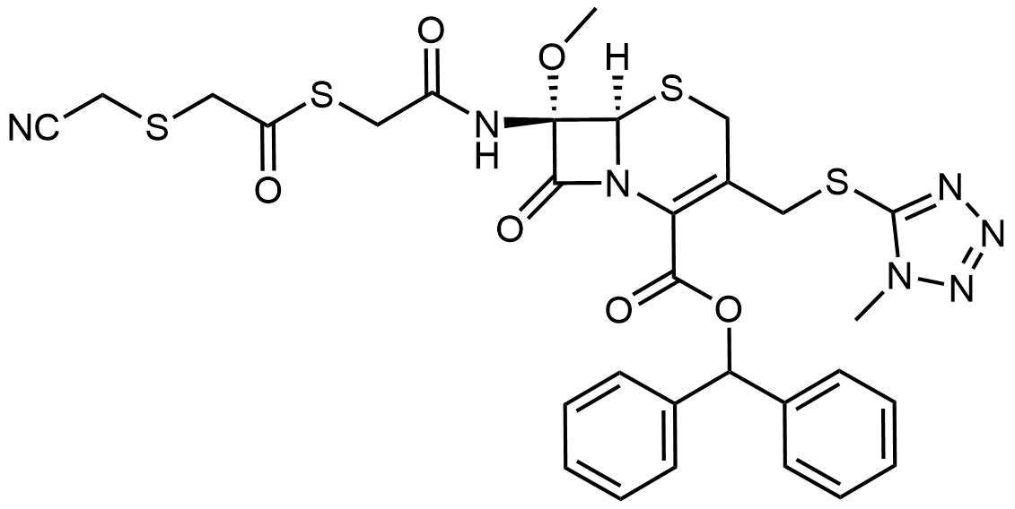 Synonyms: benzhydryl (6R,7S)-7-(2-((2-((cyanomethyl)thio)acetyl)thio)acetamido)-7-methoxy-3-(((1-methyl-1H-tetrazol-5-yl)thio)methyl)-8-oxo-5-thia-1-azabicyclo[4.2.0]oct-2-ene-2-carboxylate
