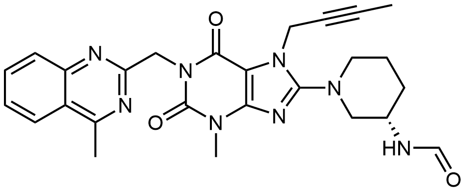 Synonyms: (S)-N-(1-(7-(but-2-yn-1-yl)-3-methyl-1-((4-methylquinazolin-2-yl)methyl)-2,6-dioxo-2,3,6,7-tetrahydro-1H-purin-8-yl)piperidin-3-yl)formamide