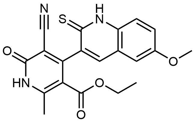 Synonyms: ethyl 5-cyano-4-(6-methoxy-2-thioxo-1,2-dihydroquinolin-3-yl)-2-methyl-6-oxo-1,6-dihydropyridine-3-carboxylate