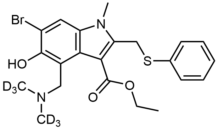 Synonyms: ethyl 4-((bis(methyl-d3)amino)methyl)-6-bromo-5-hydroxy-1-methyl-2-((phenylthio)methyl)-1H-indole-3-carboxylate
