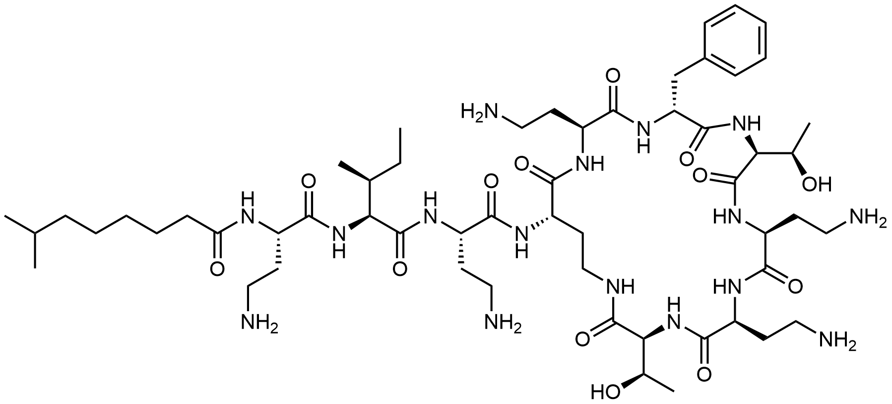 Synonyms: N-((S)-4-amino-1-(((2S,3S)-1-(((S)-4-amino-1-oxo-1-(((3S,6S,9S,12S,15R,18S,21S)-6,9,18-tris(2-aminoethyl)-15-benzyl-3,12-bis((R)-1-hydroxyethyl)-2,5,8,11,14,17,20-heptaoxo-1,4,7,10,13,16,19-heptaazacyclotricosan-21-yl)amino)butan-2-yl)amino)-3-methyl-1-oxopentan-2-yl)amino)-1-oxobutan-2-yl)-7-methyloctanamide