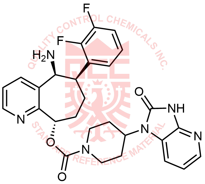 Synonyms: (5S,6R,9S)-5-amino-6-(2,3-difluorophenyl)-6,7,8,9-tetrahydro-5H-cyclohepta[b]pyridin-9-yl 4-(2-oxo-2,3-dihydro-1H-imidazo[4,5-b]pyridin-1-yl)piperidine-1-carboxylate