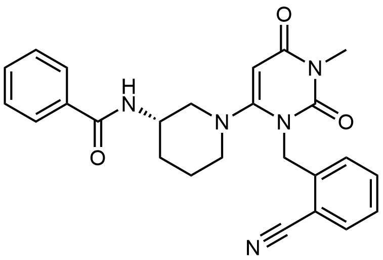 Synonyms: (S)-N-(1-(3-(2-cyanobenzyl)-1-methyl-2,6-dioxo-1,2,3,6-tetrahydropyrimidin-4-yl)piperidin-3-yl)benzamide