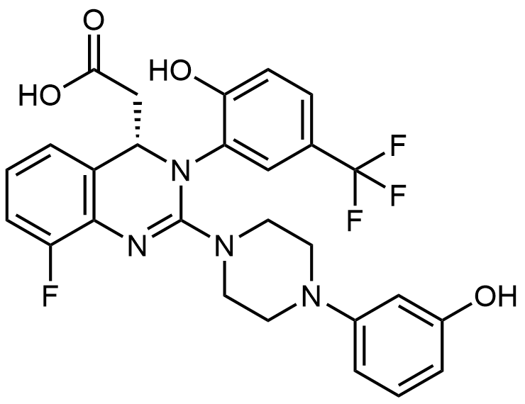 Synonyms: (S)-2-(8-fluoro-3-(2-hydroxy-5-(trifluoromethyl)phenyl)-2-(4-(3-hydroxyphenyl)piperazin-1-yl)-3,4-dihydroquinazolin-4-yl)acetic acid
