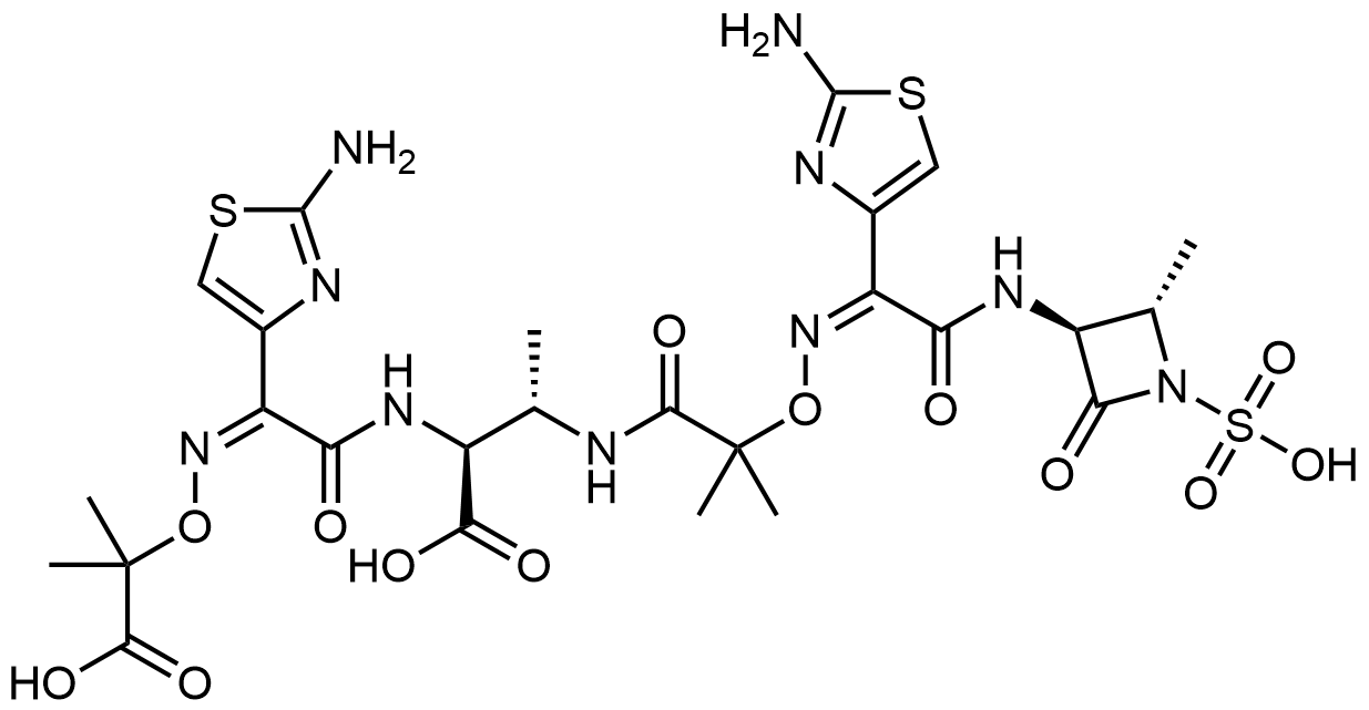 Synonyms: (2Z,8S,9S,12Z)-2,12-bis(2-aminothiazol-4-yl)-9-carboxy-5,5,8,15,15-pentamethyl-1-(((2S,3S)-2-methyl-4-oxo-1-sulfoazetidin-3-yl)amino)-1,6,11-trioxo-4,14-dioxa-3,7,10,13-tetraazahexadeca-2,12-dien-16-oic acid