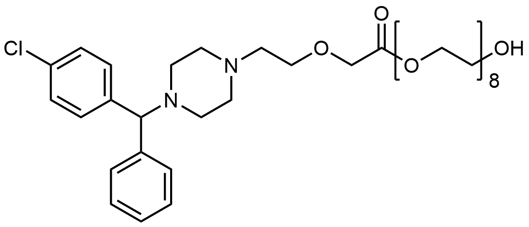 Synonyms: 23-hydroxy-3,6,9,12,15,18,21-heptaoxatricosyl 2-(2-(4-((4-chlorophenyl)(phenyl)methyl)piperazin-1-yl)ethoxy)acetate