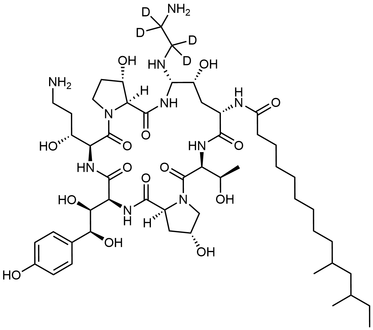 Synonyms: N-((2R,6S,9S,11R,12S,14aS,15S,20S,23S,25aS)-20-((R)-3-amino-1-hydroxypropyl)-12-((2-aminoethyl-1,1,2,2-d4)amino)-23-((1S,2S)-1,2-dihydroxy-2-(4-hydroxyphenyl)ethyl)-2,11,15-trihydroxy-6-((R)-1-hydroxyethyl)-5,8,14,19,22,25-hexaoxotetracosahydro-1H-dipyrrolo[2,1-c:2',1'-l][1,4,7,10,13,16]hexaazacyclohenicosin-9-yl)-10,12-dimethyltetradecanamide