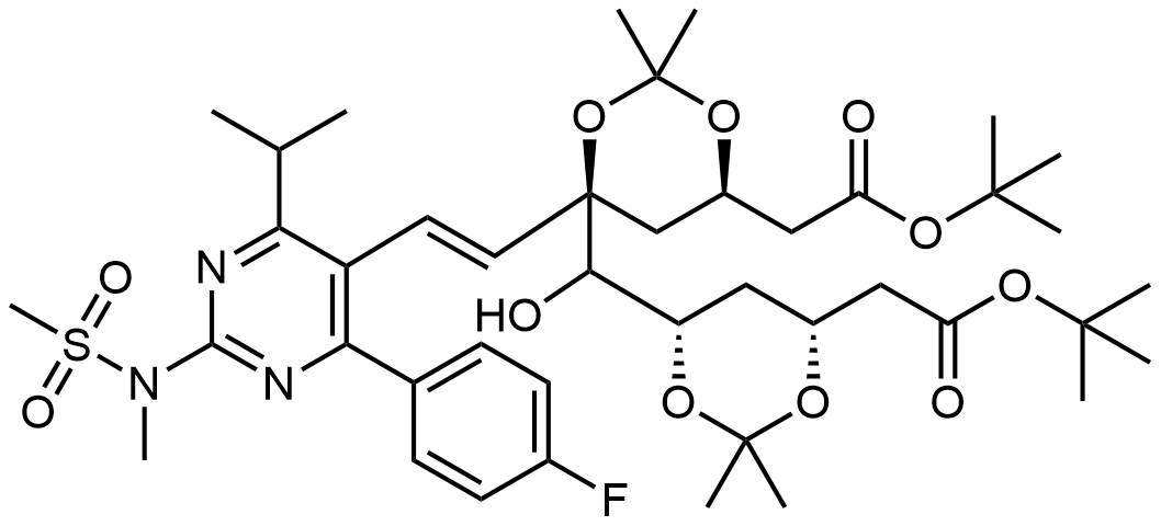 Synonyms: tert-butyl 2-((4R,6R)-6-(((4S,6R)-6-(2-(tert-butoxy)-2-oxoethyl)-2,2-dimethyl-1,3-dioxan-4-yl)(hydroxy)methyl)-6-((E)-2-(4-(4-fluorophenyl)-6-isopropyl-2-(N-methylmethylsulfonamido)pyrimidin-5-yl)vinyl)-2,2-dimethyl-1,3-dioxan-4-yl)acetate