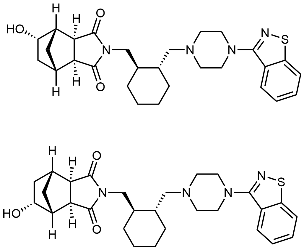 Synonyms: (3aR,4S,5S,7S,7aS)-2-(((1R,2R)-2-((4-(benzo[d]isothiazol-3-yl)piperazin-1-yl)methyl)cyclohexyl)methyl)-5-hydroxyhexahydro-1H-4,7-methanoisoindole-1,3(2H)-dione/(3aS,4R,5R,7R,7aR)-2-(((1R,2R)-2-((4-(benzo[d]isothiazol-3-yl)piperazin-1-yl)methyl)cyclohexyl)methyl)-5-hydroxyhexahydro-1H-4,7-methanoisoindole-1,3(2H)-dione
