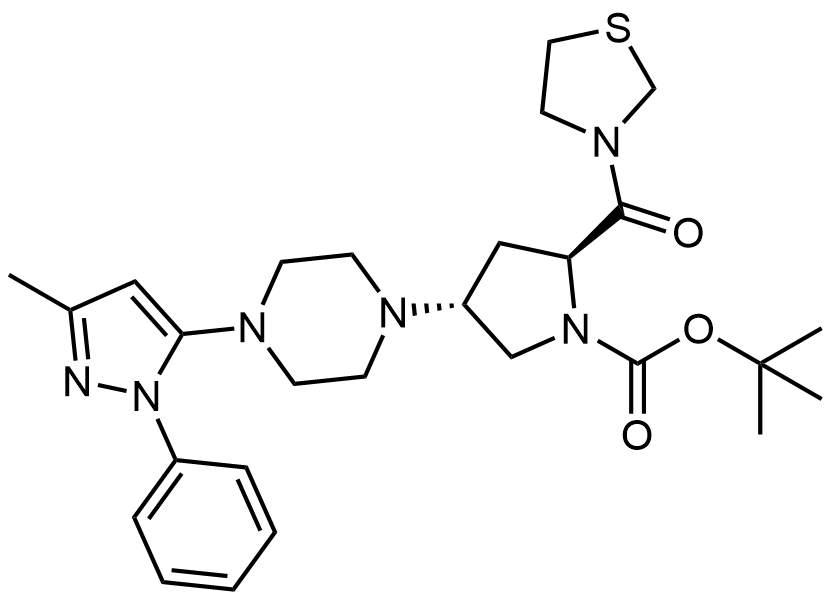 Synonyms: tert-butyl (2S,4R)-4-(4-(3-methyl-1-phenyl-1H-pyrazol-5-yl)piperazin-1-yl)-2-(thiazolidine-3-carbonyl)pyrrolidine-1-carboxylate