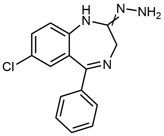 Synonyms: 7-chloro-2-hydrazineylidene-5-phenyl-2,3-dihydro-1H-benzo[e][1,4]diazepine