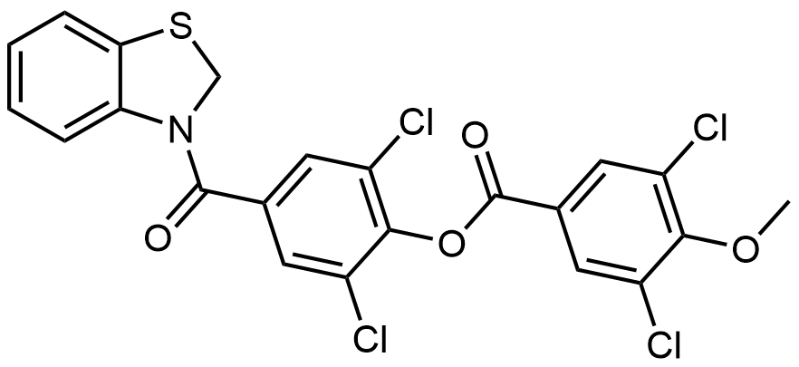Synonyms: 2,6-dichloro-4-(2,3-dihydrobenzo[d]thiazole-3-carbonyl)phenyl 3,5-dichloro-4-methoxybenzoate
