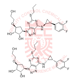 Synonyms: (1S,2S,3R,5S)-3-(7-(((1RS,2RS)-2-(3,4-difluorophenyl)cyclopropyl)amino)-5-(propylthio)-3H-[1,2,3]triazolo[4,5-d]pyrimidin-3-yl)-5-(2-hydroxyethoxy)cyclopentane-1,2-diol