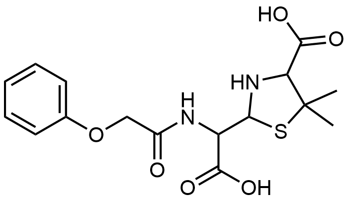 Synonyms: 2-(carboxy(2-phenoxyacetamido)methyl)-5,5-dimethylthiazolidine-4-carboxylic acid