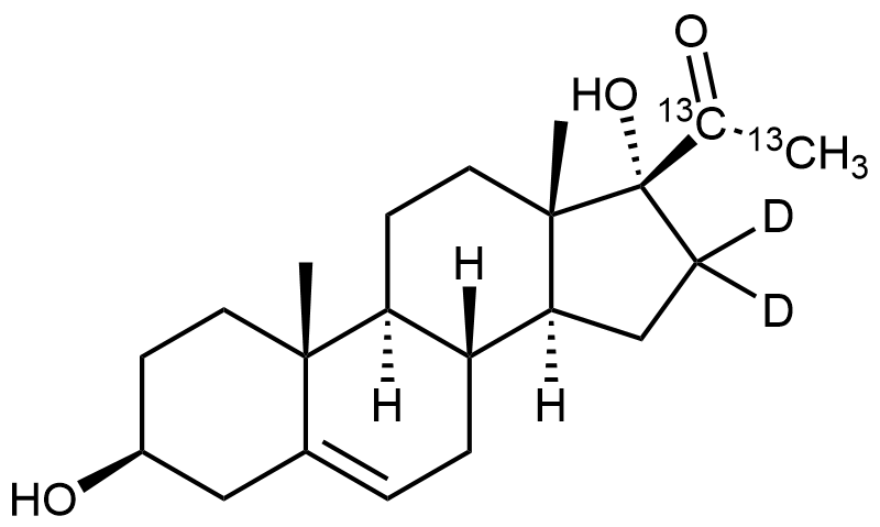 Synonyms: 1-((3S,8R,9S,10R,13S,14S,17R)-3,17-dihydroxy-10,13-dimethyl-2,3,4,7,8,9,10,11,12,13,14,15,16,17-tetradecahydro-1H-cyclopenta[a]phenanthren-17-yl-16,16-d2)ethan-1-one-1,2-13C2